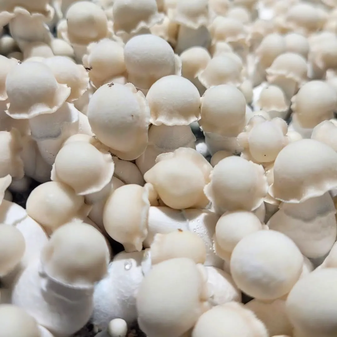 Shakti has thick solid white stems and wavy or crinkled caps, making its appearance stand out unlike other varieties. Shakti is a strong fast colonizing and high yielding strain making it a great option for those looking for reliable results.
