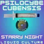 Our Starry Night liquid culture specimen is a laboratory-developed variety created specifically for microscopy study, representing a controlled cross between two parent strains, Inca Star Gazer and Albino Penis Envy.